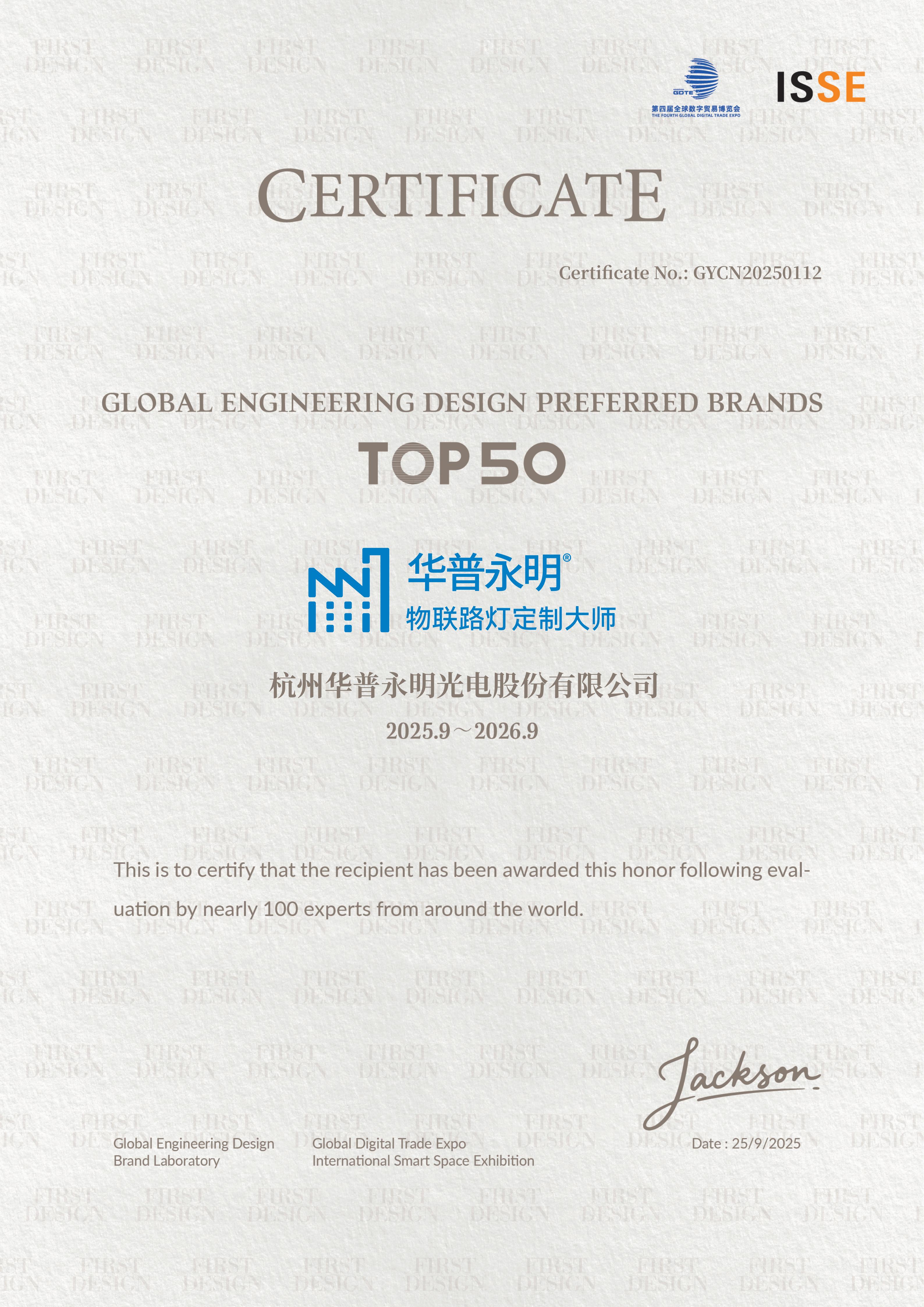 杭州華普永明光電股份有限公司(以下簡稱華普永明)榮耀登榜 "2025全球工程設計優(yōu)選品牌 TOP50",充分彰顯其在專業室外照明領域持續(xù)引領行業創(chuàng)新的硬核實力。